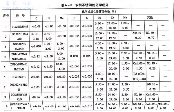 00Cr25Ni7Mo3.5WCuN鋼的化學(xue)成分見表6-2,機械(xie)性能標準見表6-3。