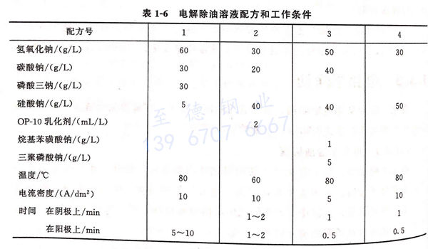不銹鋼管(guan)電化學除油溶液及(ji)工作條件見表 1-6 ,也(ye)可參照表 1-4 化學除油配方 。