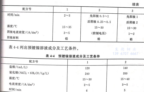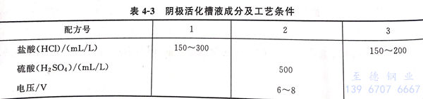 表4-3列(lie)出了(le)陰極活化槽溶液成分及(ji)工(gong)藝條件。