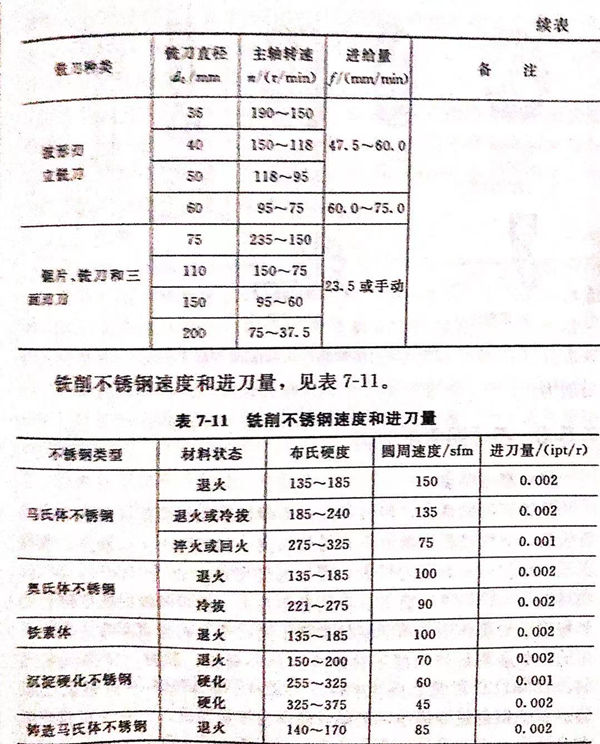 銑削在生(sheng)產(chan)量(liang)大(da)到可以(yi)證(zheng)明使用硬質合(he)金刀具(ju)是合(he)適的場合(he),選用這種刀具(ju)也可以(yi)成功地(di)進(jin)行(xing)銑削。對于銑削,可行(xing)的辦法之一是以(yi)大(da)約24m/min的速(su)(su)(su)度(du)(du)開始(shi)切(qie)削,相反地(di),用高(gao)速(su)(su)(su)鋼刀具(ju)銑削的速(su)(su)(su)度(du)(du)為9m/min,然后增(zeng)加速(su)(su)(su)度(du)(du),直至有效而(er)無過(guo)分損(sun)傷地(di)進(jin)行(xing)切(qie)削為止。