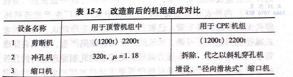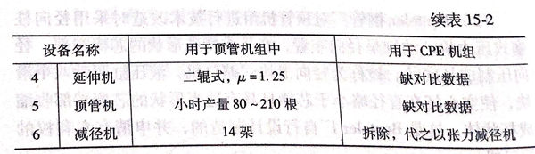 Siegen Weidenau 的 Benteler 香蕉視頻app破解碼:不銹鋼管廠的頂管機組于1985年進行了技術改造,采用CPE軋管工藝,改造前后的機組組成列表對比如表15-2所示。