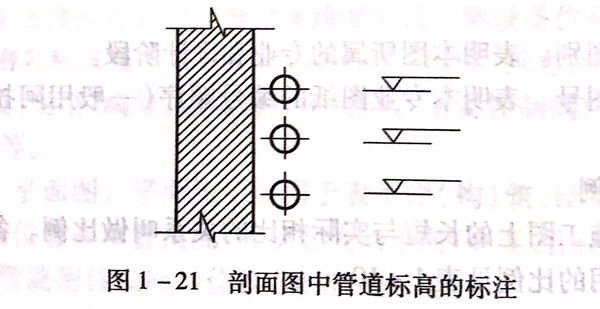 標(biao)(biao)高是標(biao)(biao)注管道或建筑物高度的一(yi)種尺寸形(xing)式。標(biao)(biao)高符(fu)號的形(xing)式見圖1-20.標(biao)(biao)高符(fu)號用細(xi)實線(xian)繪制,三角(jiao)形(xing)的尖端畫在(zai)標(biao)(biao)高引出線(xian)上,表示標(biao)(biao)高位(wei)置,尖端的指(zhi)向可(ke)向下,也可(ke)向上。剖面圖中的管道標(biao)(biao)高按(an)圖1-21標(biao)(biao)注。