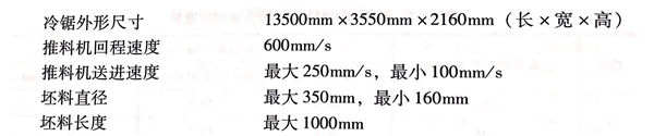 60MN(6000t)臥(wo)式(shi)擠壓(ya)機(ji)采用(yong)具有坯料分段(duan)鋸(ju)切成要求的長(chang)度,并有對坯料頭(tou)尾(wei)進行鋸(ju)切功能的帶鋸(ju)機(ji)。