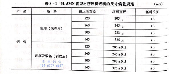 國外擠壓不銹鋼(gang)管廠坯料加工的技術指標見表8-2.