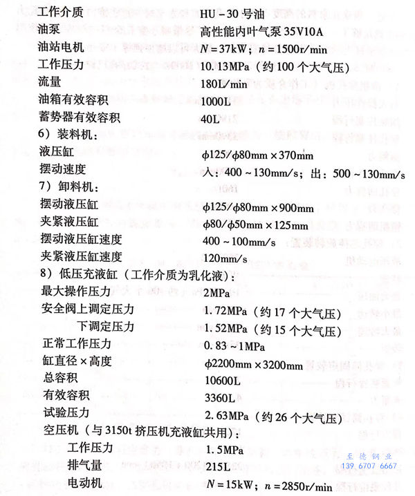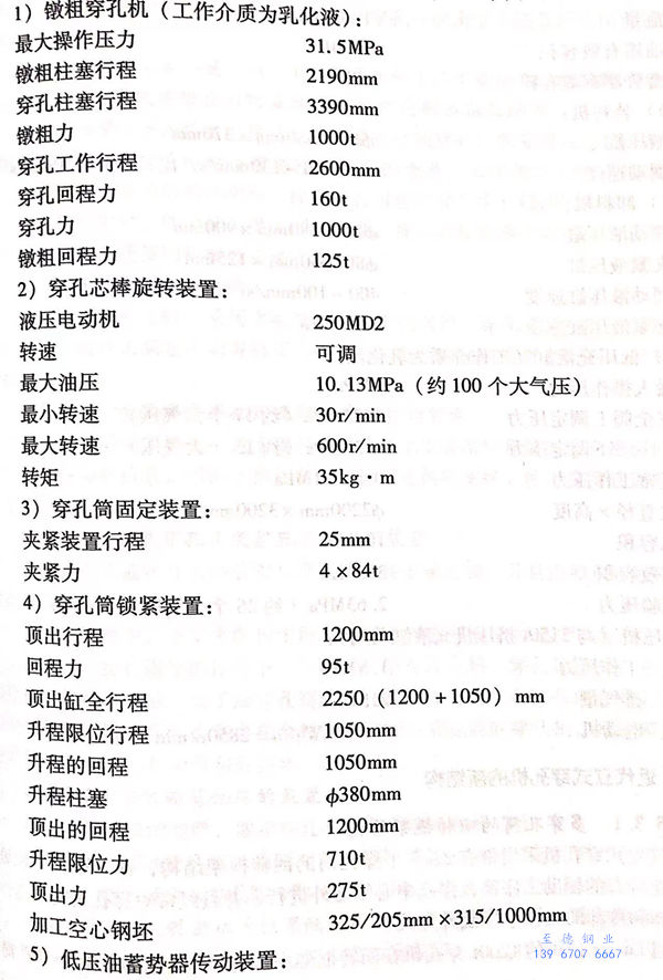 6. 31.5MN(3150t)擠壓車(che)間10MN(1000t)立式穿孔機設備性能: