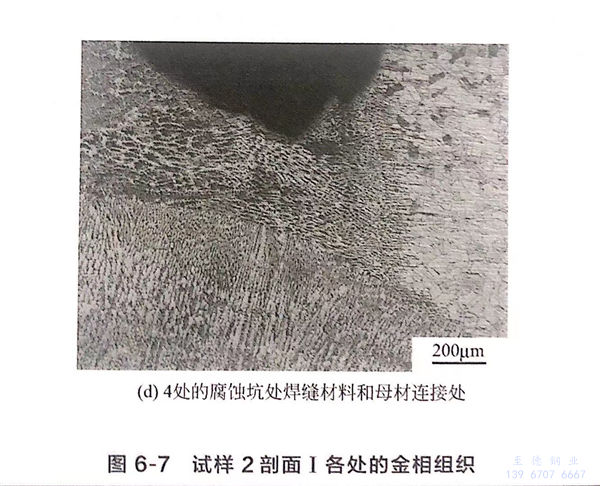 與表6-2中的化(hua)學成分相(xiang)比,正(zheng)常焊縫(feng)(feng)里的Cr和(he)Ni含量和(he)母(mu)材相(xiang)當,符合標準規(gui)定的要求,但(dan)是(shi)發生腐(fu)蝕的焊縫(feng)(feng)內(nei)部Cr和(he)Ni的含量明顯比正(zheng)常焊材和(he)母(mu)材低(di)。
