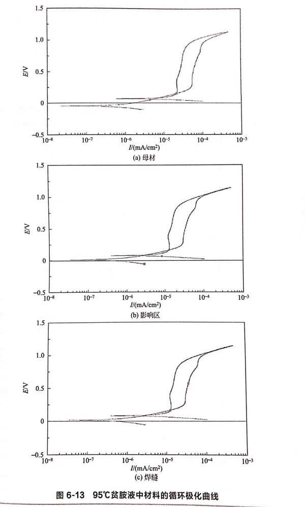 圖(tu)6-13是(shi)在貧胺液中測得的材料(liao)的循環極化(hua)曲線,得到的擊破電位(wei)、保護電位(wei)和自腐蝕電位(wei)數值列在表6-5中。