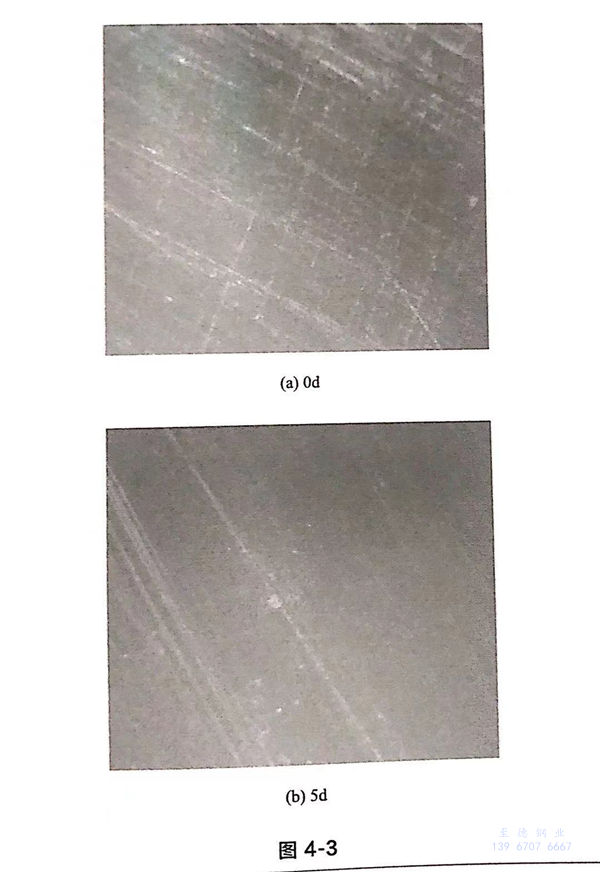 為了解不(bu)同(tong)時(shi)(shi)間(jian)點(dian)(dian)蝕(shi)萌(meng)生(sheng)數量,采用浸泡(pao)法研究點(dian)(dian)蝕(shi)的(de)(de)(de)萌(meng)生(sheng)率,為縮短試(shi)(shi)驗(yan)(yan)周期(qi),使用FeCl。溶液(ye)作為腐(fu)蝕(shi)液(ye)。試(shi)(shi)驗(yan)(yan)用材、試(shi)(shi)樣尺寸、封裝(zhuang)方(fang)式同(tong)4.1.3節,試(shi)(shi)樣打磨后放入6%FeCl3溶液(ye)中(zhong)浸泡(pao)。經(jing)過一定時(shi)(shi)間(jian)的(de)(de)(de)腐(fu)蝕(shi)后,把試(shi)(shi)樣取出,經(jing)清洗(xi)和烘干,在低倍鏡下(xia)測量單位面積上的(de)(de)(de)點(dian)(dian)蝕(shi)坑數目。點(dian)(dian)蝕(shi)密度隨浸泡(pao)時(shi)(shi)間(jian)的(de)(de)(de)變化(hua)趨(qu)勢如(ru)圖4-5所示。從圖4-5可看出,點(dian)(dian)蝕(shi)產生(sheng)的(de)(de)(de)初始(shi)階(jie)段(duan),點(dian)(dian)蝕(shi)萌(meng)生(sheng)率很大,經(jing)過一段(duan)時(shi)(shi)間(jian)后逐漸(jian)減小,并(bing)趨(qu)于平(ping)穩。由于點(dian)(dian)蝕(shi)的(de)(de)(de)產生(sheng)與材料表面的(de)(de)(de)MnS夾雜有(you)關,MnS夾雜部(bu)位點(dian)(dian)蝕(shi)的(de)(de)(de)孕育時(shi)(shi)間(jian)基本(ben)相同(tong),點(dian)(dian)蝕(shi)萌(meng)生(sheng)時(shi)(shi)間(jian)比較集中(zhong)。