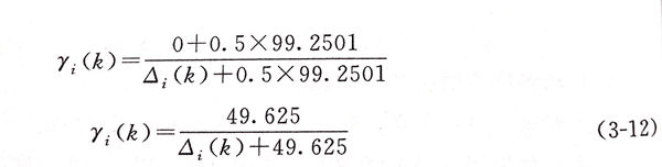 取分(fen)辨系(xi)數(shu)(shu)(shu)為0.5,將(jiang)兩極(ji)差數(shu)(shu)(shu)值(zhi)代人式(3-7),計算關(guan)聯系(xi)數(shu)(shu)(shu)如(ru)下:
