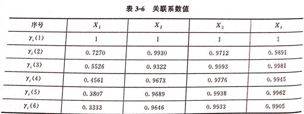 將表 3-5 中的(de)數據代入式(3-12),分別求出關(guan)聯系(xi)數,計算結果(guo)見表 3-6。