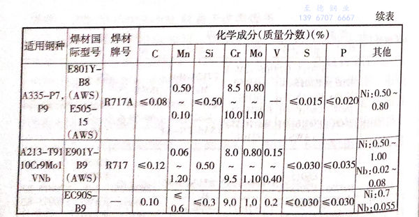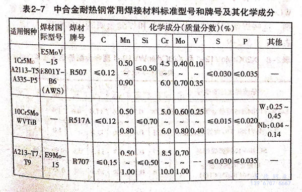 表2-7 中合金耐熱鋼常用(yong)焊接(jie)材料標(biao)準型號和牌號及(ji)其化學成分