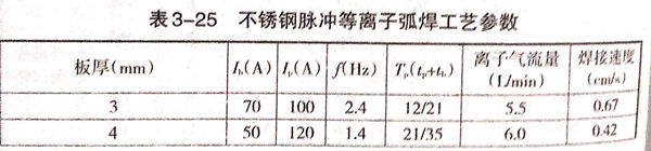 不銹鋼脈(mo)沖(chong)等離子弧焊(han)工藝參數見表(biao)3-25.