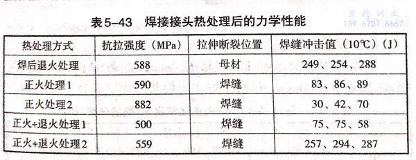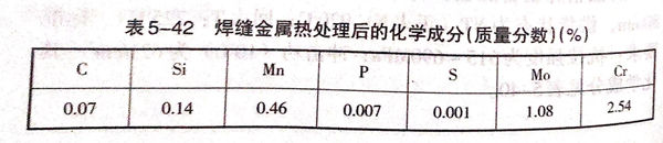 正火出爐后(hou)的(de)(de)加速冷(leng)卻(que)應采(cai)取具體的(de)(de)工藝措施,以保證一定的(de)(de)冷(leng)卻(que)速度。焊(han)接接頭經熱處理后(hou)的(de)(de)化學成分(fen)見表5-42,力學性能見表5-43.