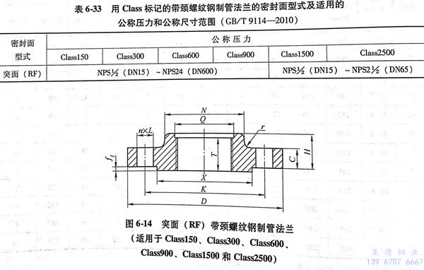 2. 用(yong)(yong)Class標(biao)記(ji)的帶(dai)頸螺紋(wen)(wen)鋼(gang)制(zhi)(zhi)管法蘭:用(yong)(yong)Class標(biao)記(ji)的帶(dai)頸螺紋(wen)(wen)鋼(gang)制(zhi)(zhi)管法蘭的密封(feng)面型式(shi)及適用(yong)(yong)的公(gong)稱(cheng)壓力和公(gong)稱(cheng)尺(chi)寸(cun)范圍見表(biao)6-33;用(yong)(yong)Class標(biao)記(ji)的帶(dai)頸螺紋(wen)(wen)鋼(gang)制(zhi)(zhi)管法蘭的型式(shi)見圖6-14,尺(chi)寸(cun)見表(biao)6-34~表(biao)6-39。