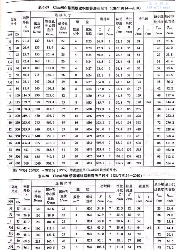 2. Class標(biao)記的螺紋法(fa)蘭一般采用(yong)符合GB/T 12716-2002《60°密封管螺紋》規(gui)定(ding)的60°圓錐管螺紋(NPT),或采用(yong)為用(yong)戶新規(gui)定(ding)的螺紋。