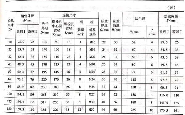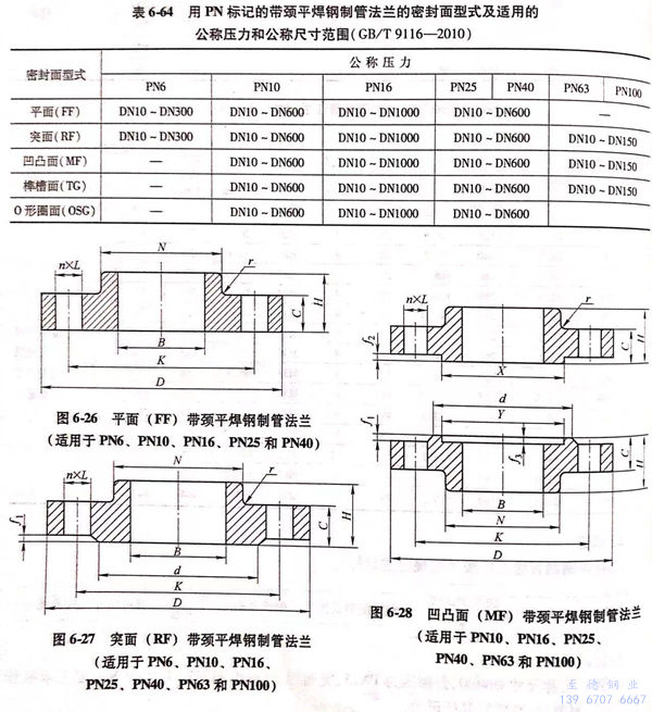 用(yong)PN標(biao)記(ji)(ji)的(de)帶(dai)頸平(ping)焊(han)鋼(gang)制管法(fa)蘭(lan)(lan)的(de)密(mi)封面型(xing)式及(ji)適用(yong)的(de)公稱壓(ya)力和(he)公稱尺(chi)寸范圍見表(biao)(biao)6-64;用(yong)PN標(biao)記(ji)(ji)的(de)帶(dai)頸平(ping)焊(han)鋼(gang)制管法(fa)蘭(lan)(lan)的(de)型(xing)式見圖(tu)6-26~圖(tu)6-30,法(fa)蘭(lan)(lan)密(mi)封面尺(chi)寸見表(biao)(biao)6-65,法(fa)蘭(lan)(lan)結構尺(chi)寸見表(biao)(biao)6-66~表(biao)(biao)6-72.