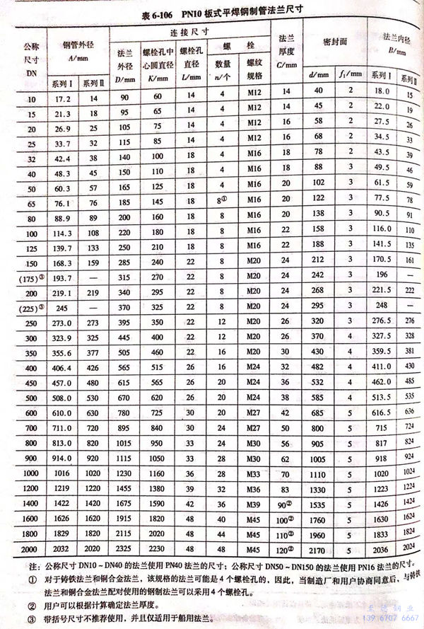 用PN標(biao)記的板(ban)式平焊(han)鋼制管法(fa)蘭(lan)的密封面(mian)型(xing)式及適(shi)用的公稱壓力(li)和公稱尺寸(cun)范圍見(jian)(jian)表6-103;用PN標(biao)記的板(ban)式平焊(han)鋼制管法(fa)蘭(lan)的型(xing)式如圖(tu)(tu)6-49、圖(tu)(tu)6-50所(suo)示,法(fa)蘭(lan)的結構(gou)尺寸(cun)見(jian)(jian)表6-104~表6-111。