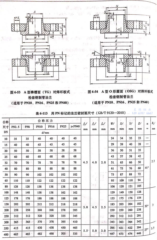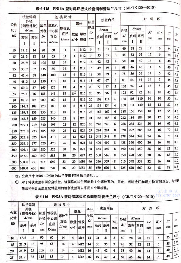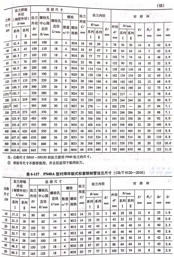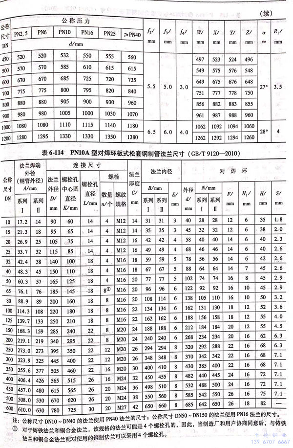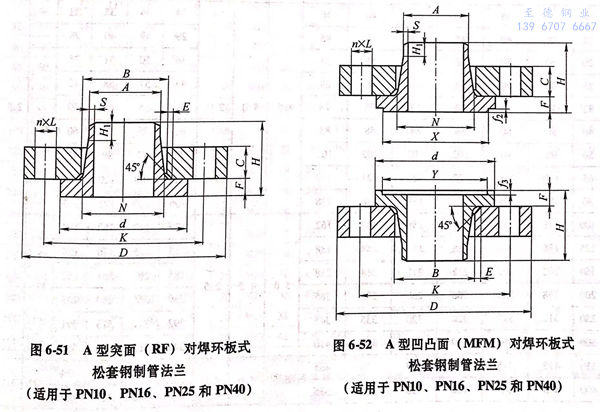 1. 用PN標記(ji)的(de)A型對焊環板(ban)式(shi)(shi)松套鋼制管法(fa)蘭的(de)型式(shi)(shi)如圖(tu)(tu)6-51~圖(tu)(tu)6-54所(suo)示;法(fa)蘭密封面(mian)尺寸見表6-113;法(fa)蘭結(jie)構尺寸或尺寸見表6-114~表6-117,當用戶選用的(de)S值不同于表中(zhong)數值時,應在訂貨時注明。