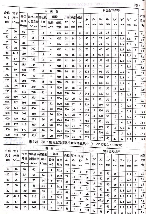 2. 銅合金(jin)對焊環松套鋼(gang)法(fa)蘭(lan)(B型)的型式與尺(chi)寸見圖9-10和表9-35~表9-40.