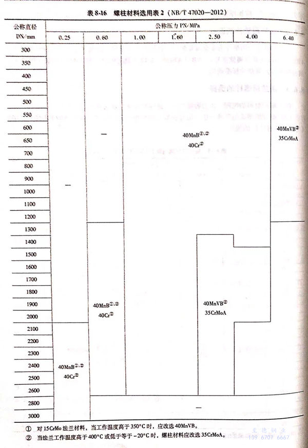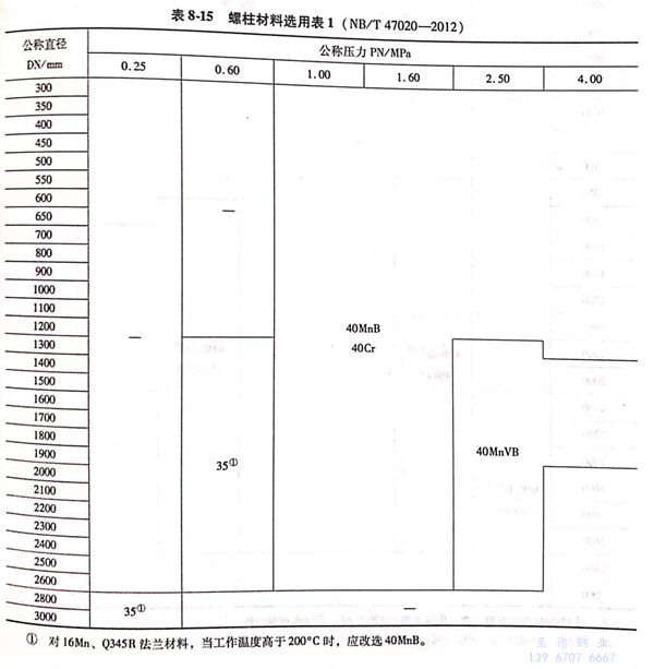 壓力容器法蘭(lan)用(yong)螺柱材料選用(yong)表見表8-15~表8-17。