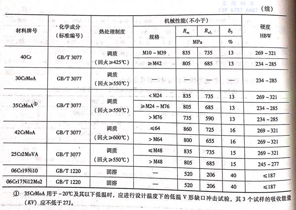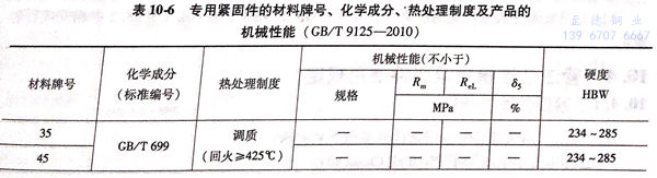 專用(yong)緊固(gu)(gu)件所用(yong)材(cai)料(liao)的(de)化(hua)學成分、熱(re)處理制(zhi)度及(ji)機械(xie)性(xing)(xing)能見表10-6。超(chao)高溫高壓(ya)法蘭用(yong)緊固(gu)(gu)件的(de)材(cai)料(liao)牌號及(ji)化(hua)學成分、熱(re)處理制(zhi)度和產品的(de)機械(xie)性(xing)(xing)能由供需雙方協商確定。