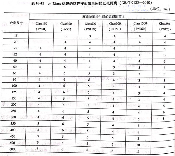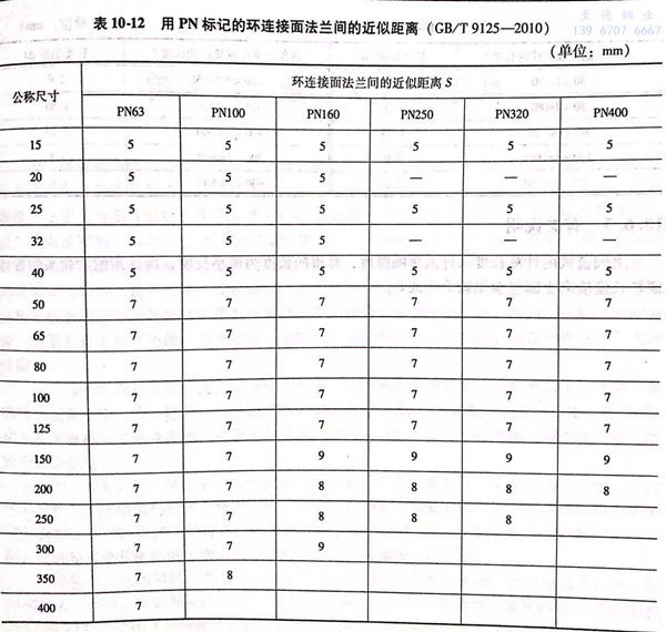 S-環連接面法(fa)(fa)蘭(lan)間近(jin)似距離,數值按表10-11或(huo)表10-12(或(huo)相應的(de)法(fa)(fa)蘭(lan)標準)確定,單位為毫米(mm);