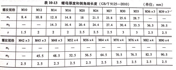 m-螺母(mu)最大厚度(du),數值按表10-13確定(ding),與(yu)螺栓配合(he)時用(yong)m1,與(yu)螺柱配合(he)時用(yong)m2,單(dan)位為毫米(mi)(mm);