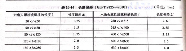 Δι-螺栓(shuan)或螺柱(zhu)的長(chang)度偏差,數(shu)值按表10-14 確定,單(dan)位為毫米(mm);