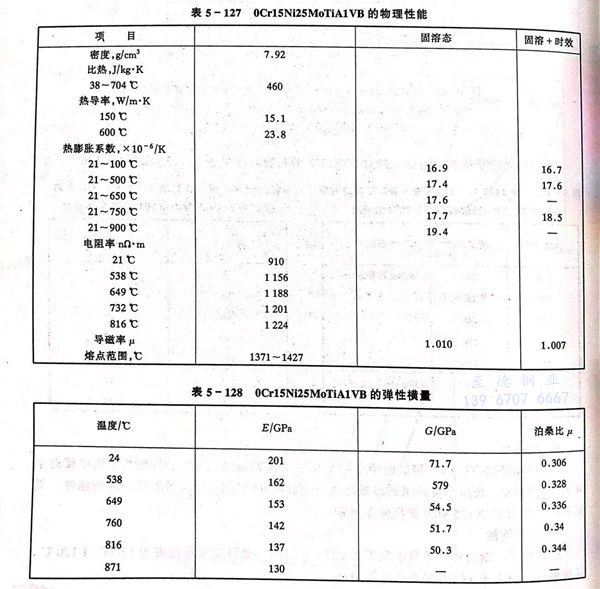 0Cr15Ni25MoTiA1VB、A-286 不銹鋼的(de)物理性能見表5-127,表5-128和圖5-42、圖5-43。