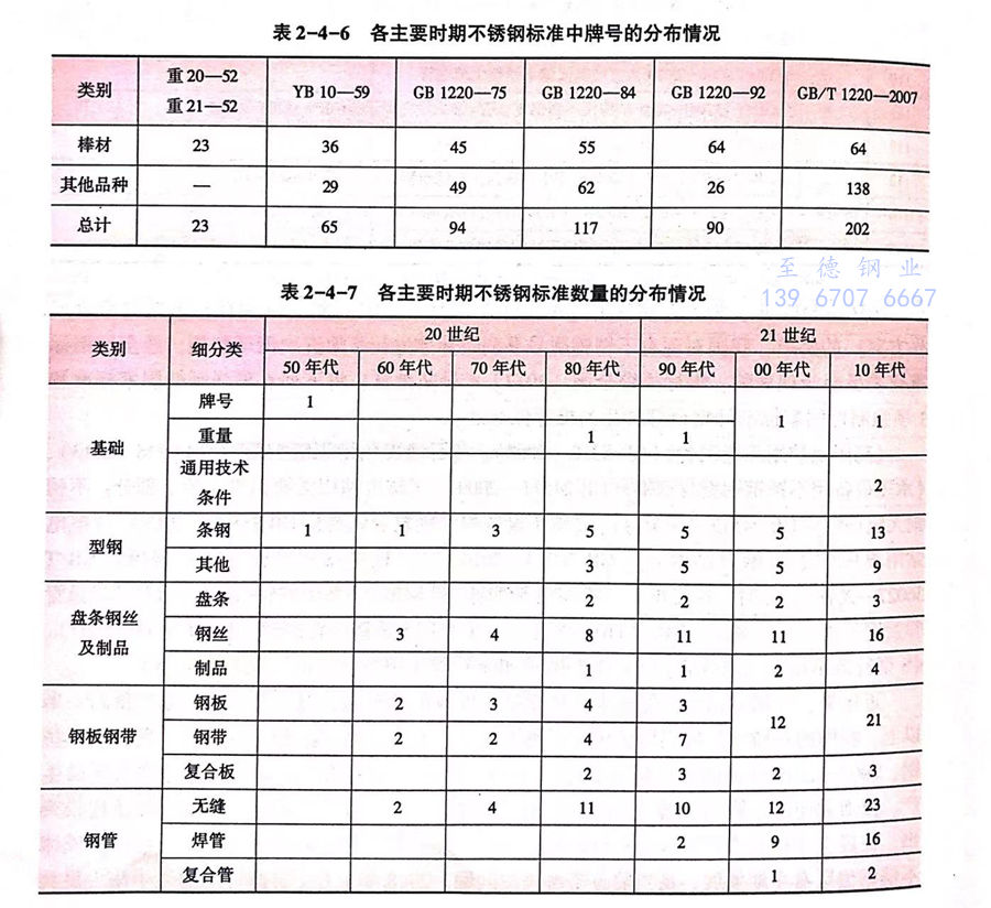 綜(zong)上(shang)所述(shu),我國(guo)不銹鋼標準經(jing)歷了(le)(le)(le)起步、調整、發(fa)展(zhan)和改革等四個階段,使我國(guo)不銹鋼標準牌號(hao)(見(jian)表(biao)2-4-6)、數量(見(jian)表(biao)2-4-7)、標準水平和國(guo)際通用(yong)性都有(you)長足的(de)進(jin)步和發(fa)展(zhan),體現(xian)了(le)(le)(le)我國(guo)不銹鋼標準由生產(chan)型向(xiang)貿易型的(de)轉(zhuan)變,深(shen)刻(ke)展(zhan)現(xian)了(le)(le)(le)我國(guo)計劃(hua)經(jing)濟向(xiang)市(shi)場經(jing)濟的(de)轉(zhuan)變。