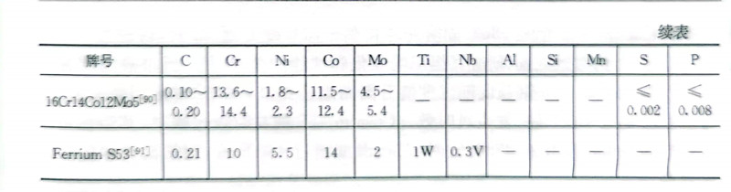 近年國內(nei)外為適應航空、航天、海(hai)洋等高(gao)科技領域(yu)一(yi)些裝置的(de)承力、耐蝕、耐高(gao)溫部件用材(cai)的(de)需要(yao),研(yan)究(jiu)和開發出一(yi)些新的(de)具有高(gao)性能的(de)馬(ma)氏體(ti)沉(chen)淀硬化(hua)不(bu)銹(xiu)鋼,表9.60為國內(nei)外研(yan)制開發的(de)一(yi)些高(gao)性能馬(ma)氏體(ti)沉(chen)淀硬化(hua)不(bu)銹(xiu)鋼的(de)化(hua)學成分。