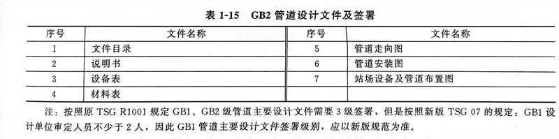 注:按照(zhao)(zhao)原(yuan)TSG R1001規定GB1、GB2級管(guan)道主要設(she)(she)計文件(jian)需(xu)要3級簽署,但是按照(zhao)(zhao)新版TSG07的規定:GB1設(she)(she)計單位(wei)審定人(ren)員(yuan)不少于2人(ren),因此GB1管(guan)道主要設(she)(she)計文件(jian)簽署級別,應以新版規范為(wei)準。