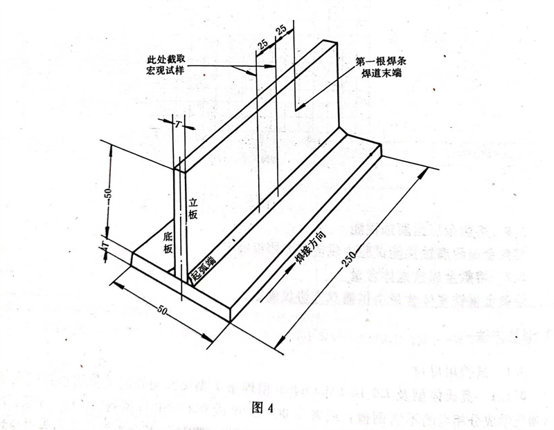 3.3.7焊(han)后的焊(han)縫應首先(xian)做肉眼檢查,然后按圖4所示截取(qu)一個宏觀試件。截得兩斷面(mian)中(zhong)的任(ren)意(yi)一面(mian)均(jun)可用于檢驗。
