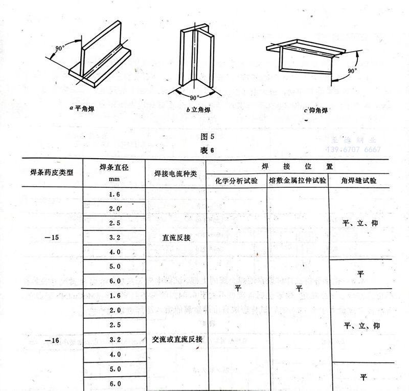 直(zhi)徑小(xiao)于(yu)3.2mm的焊條一(yi)般不進行(xing)T型接(jie)頭角焊縫(feng)和機械性能(neng)試驗,其性能(neng)可以(yi)根據直(zhi)徑為(wei)3.2mm的檢驗結(jie)果判定。如(ru)需要試驗時,按表6規定進行(xing)。