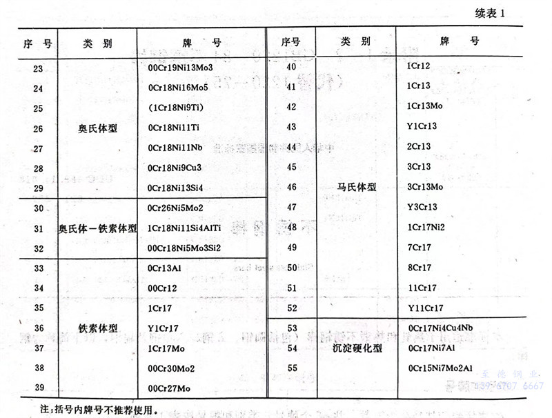 1.1 鋼按組織特征分為五類(lei)(lei),共55個牌號。類(lei)(lei)別和牌號按表(biao)1所列(表(biao)1見原文)。