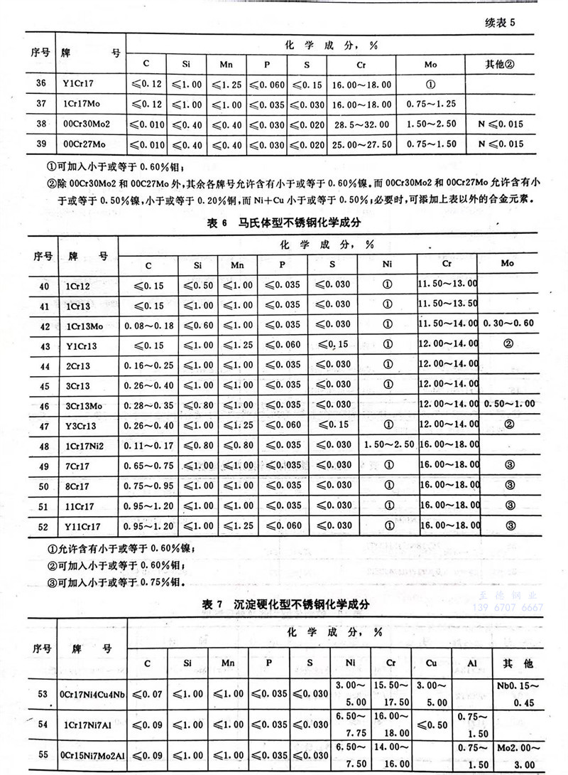 序(xu)號52Y11Cr17原S≤0.15%,更正(zheng)為S≥0.15%。