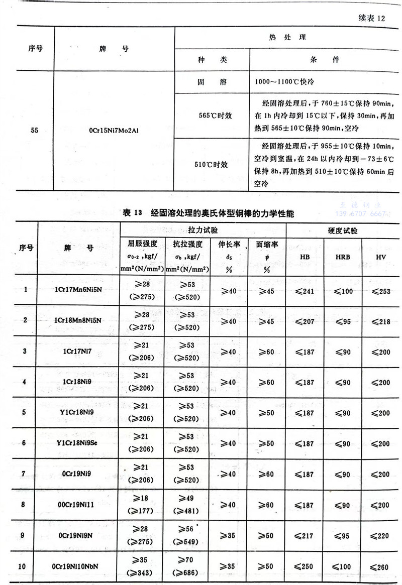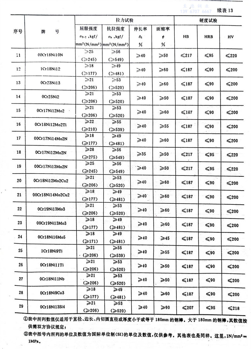 3.3.1 經固溶處(chu)理(li)的(de)奧氏(shi)體型鋼(gang)棒或試樣(yang)毛(mao)坯的(de)力學(xue)性能應(ying)符合表13規定。