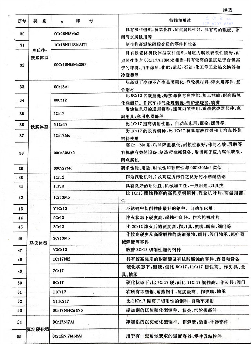 A.1 不銹鋼(gang)的(de)特性和(he)用途見下表(biao)
