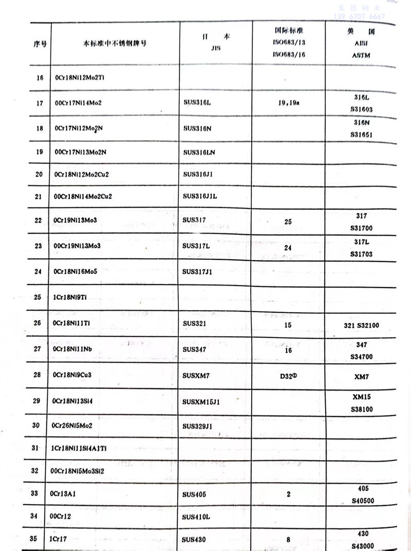 序號(hao)36 Y1Cr17 原S≤0.15%,更正為S≥0.15%。