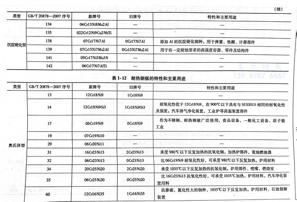 耐熱(re)鋼板的特(te)性(xing)和主要用途(tu)見表1-12。