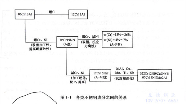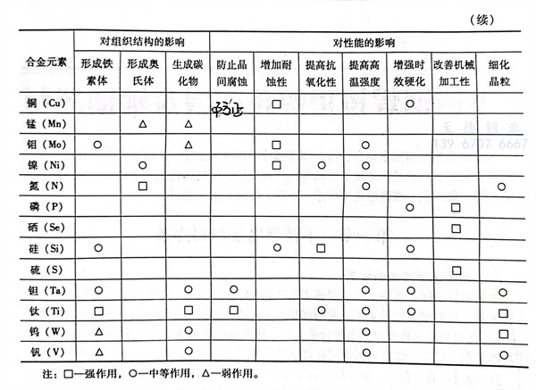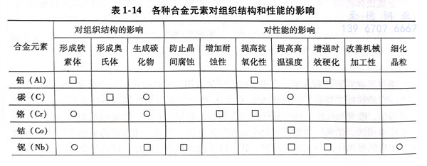 上(shang)述合金(jin)元(yuan)素對鋼的(de)(de)作(zuo)用不(bu)是(shi)簡單的(de)(de)疊加,也不(bu)是(shi)相互抵消的(de)(de)。它們相互之間有(you)時會發生新的(de)(de)物(wu)理化(hua)學作(zuo)用,往往會引起(qi)強化(hua)力學性(xing)能(neng)的(de)(de)作(zuo)用。各種(zhong)合金(jin)元(yuan)素對不(bu)銹鋼組織結(jie)構和(he)性(xing)能(neng)的(de)(de)影響見表1-14,亦可見圖(tu)1-1、圖(tu)1-2。從(cong)表中可以看出,合金(jin)元(yuan)素對不(bu)銹鋼組織的(de)(de)影響基本(ben)上(shang)分三(san)大類(lei):第(di)(di)一(yi)類(lei)是(shi)形成(cheng)(cheng)鐵(tie)素體的(de)(de)元(yuan)素,有(you)鉻(ge)、硅、鋁(lv)、鉬、鈦、鈮等(deng);第(di)(di)二類(lei)是(shi)形成(cheng)(cheng)奧氏體的(de)(de)元(yuan)素,有(you)碳(tan)、氮、鎳、錳、銅等(deng),其中碳(tan)和(he)氮的(de)(de)作(zuo)用程(cheng)度最大;第(di)(di)三(san)類(lei)是(shi)形成(cheng)(cheng)碳(tan)化(hua)物(wu)的(de)(de)元(yuan)素,有(you)鈮、鈦、碳(tan)、鉻(ge)、鎢(wu)、錳、鉬等(deng)。加入銅、鋁(lv)、鈦、鈮、氮等(deng)元(yuan)素能(neng)促使鋼產生彌(mi)散硬化(hua),從(cong)而提(ti)高鋼的(de)(de)熱強性(xing)。