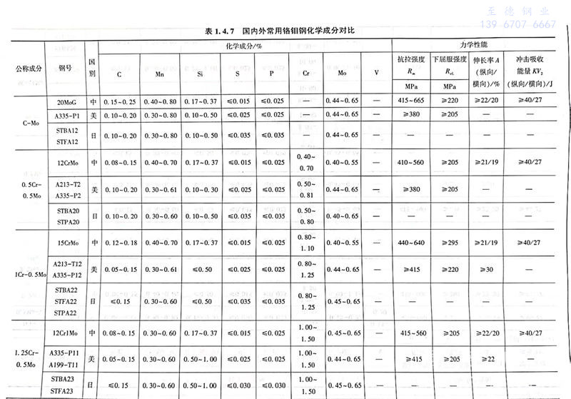 國內(nei)外(wai)常用鉻鉬(mu)鋼化學成分對比見表1.4.7。