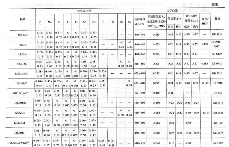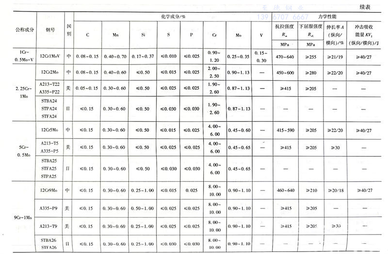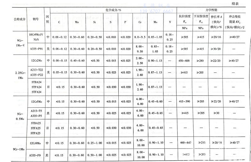 常用(yong)鉻鉬鋼化(hua)學成分和常溫力學性能對比見表1.4.8。