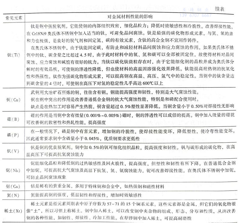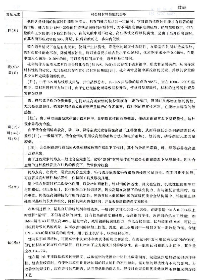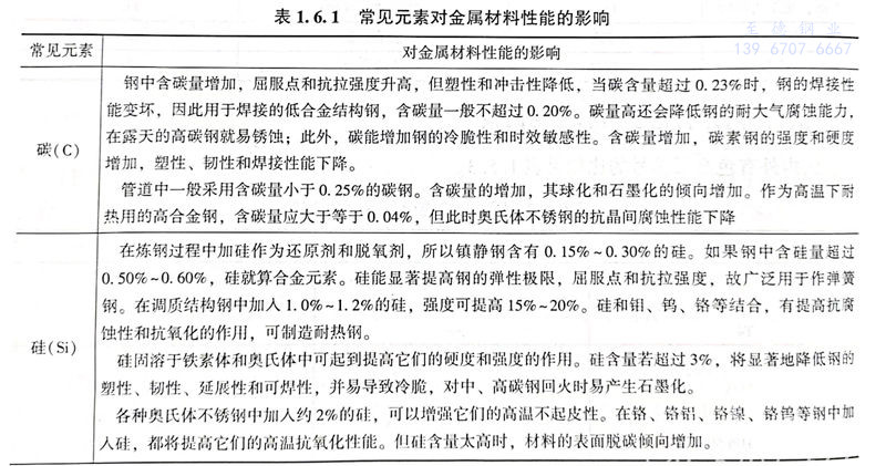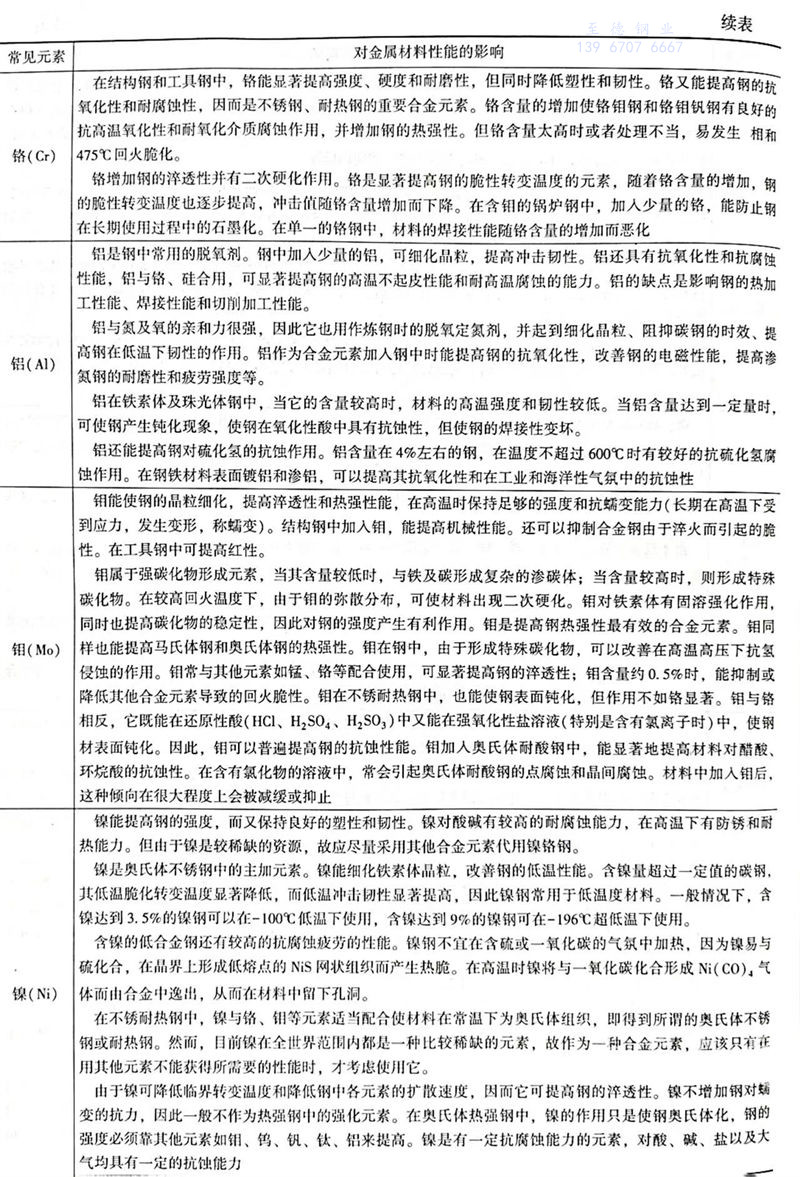 常見元素對金(jin)屬材料性(xing)能的(de)影響見表1.6.1。