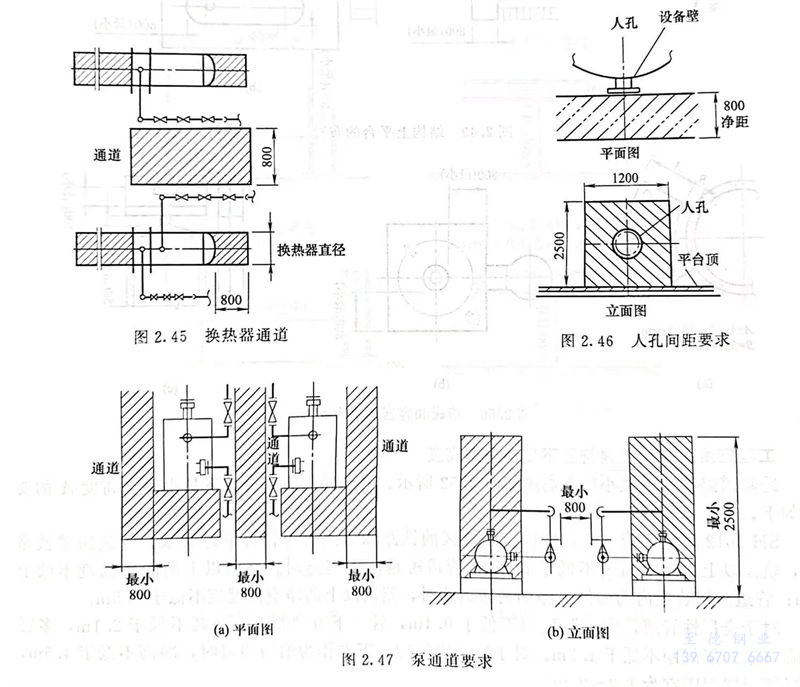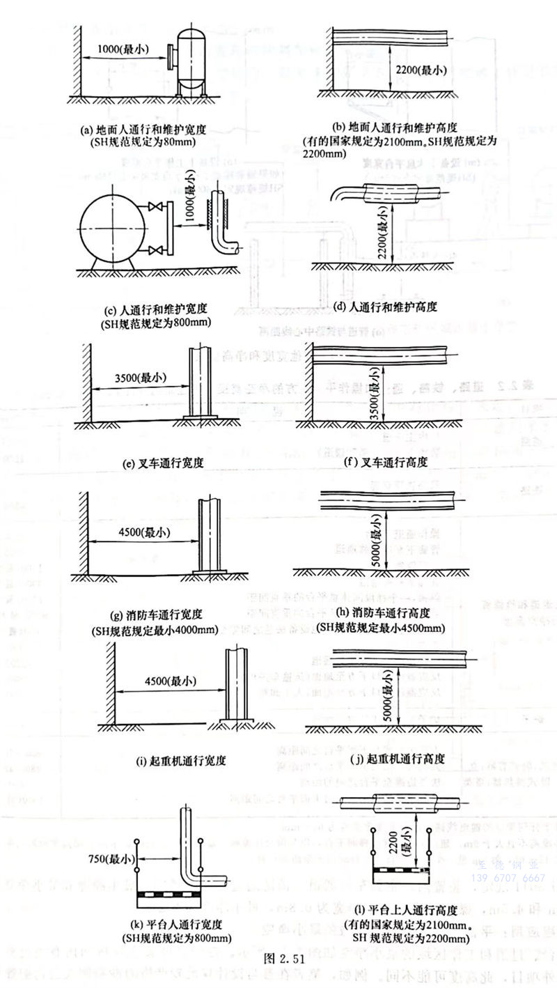 設備之間或設備建、構筑物(或障礙物)間的凈距見表2.1。