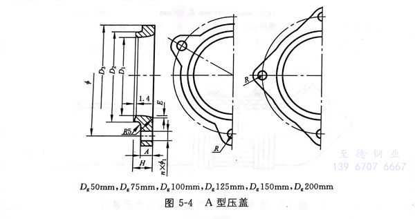 b. A 型(xing)(xing)柔性接口直(zhi)管及管件配套用(yong)法蘭(lan)壓(ya)蓋型(xing)(xing)式見圖 5-4 ,尺(chi)寸見表 5-4 。
