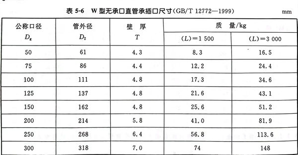 a. W 型(xing)無(wu)承(cheng)口直管承(cheng)插口型(xing)式見(jian)圖 5-6 ,尺寸(cun)見(jian)表 5-6 。