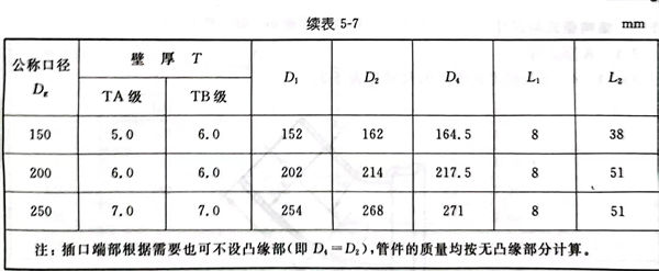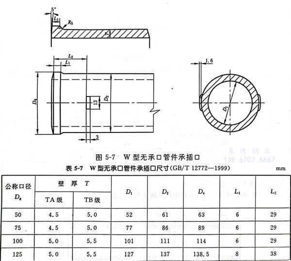b. W 型(xing)無(wu)承口管件承插(cha)口型(xing)式見(jian)圖 5-7 ,尺寸(cun)見(jian)表 5-7 。
