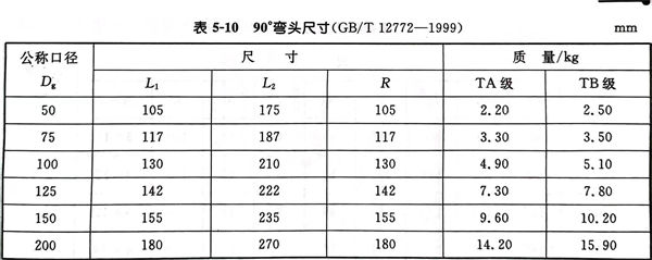 90°彎(wan)頭型式見圖 5-10 ,尺(chi)寸見表(biao) 5-10 。