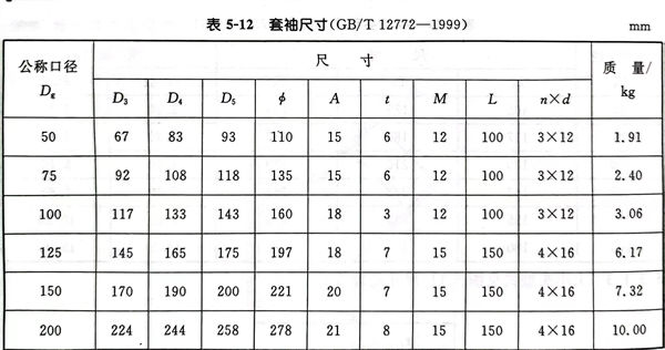 套(tao)袖型式見圖 5-12 ,尺寸見表 5-12 。
